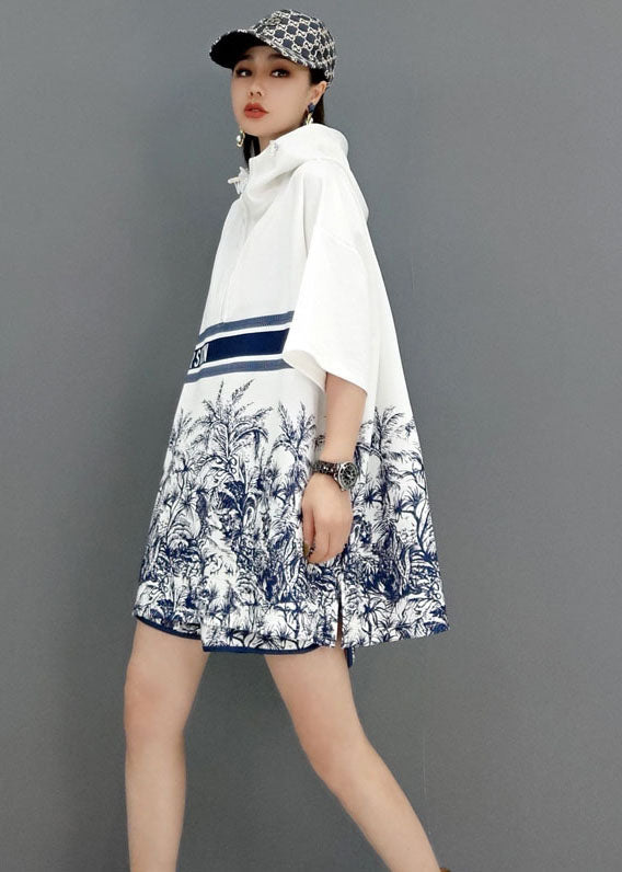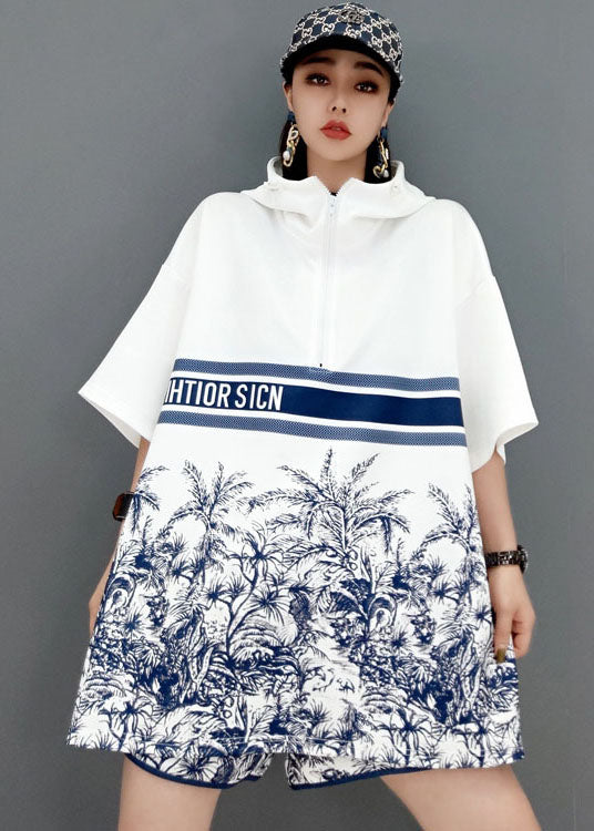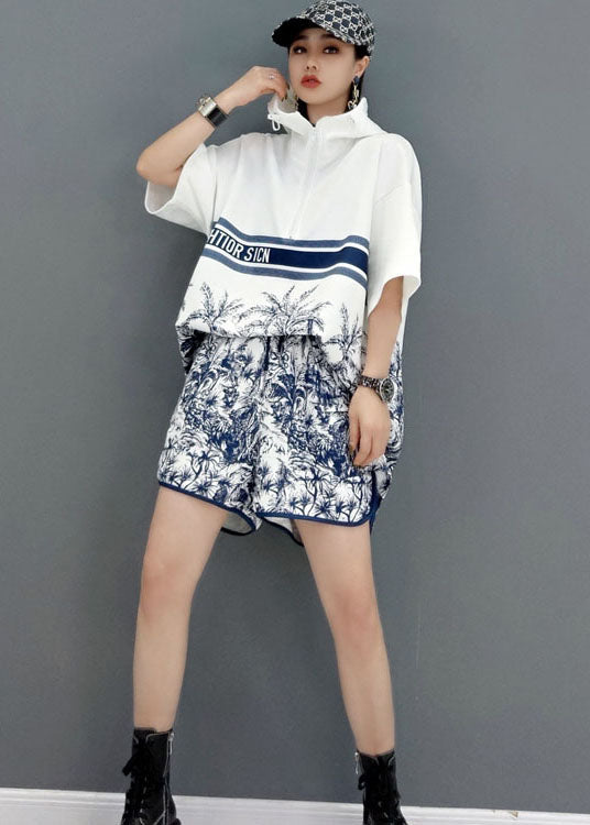 Französisches weißes Zweiteiler-Set mit Reißverschluss und halblangen Ärmeln