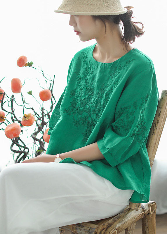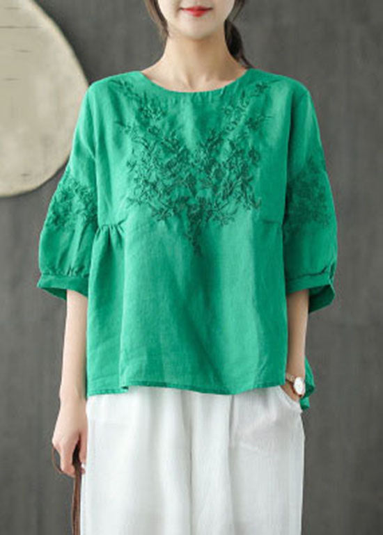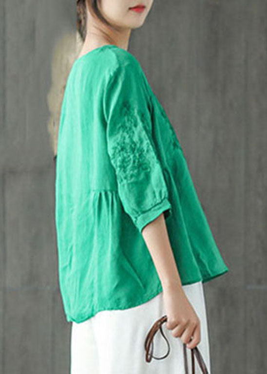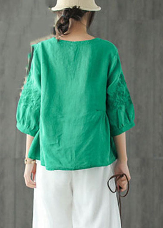 Grüne lockere Bluse Tops zerknittert Halbarm