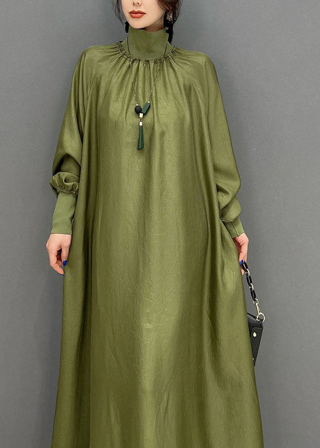 Grüne Lose Seide A-linie Kleider Hohe Hals Drapieren Frühling