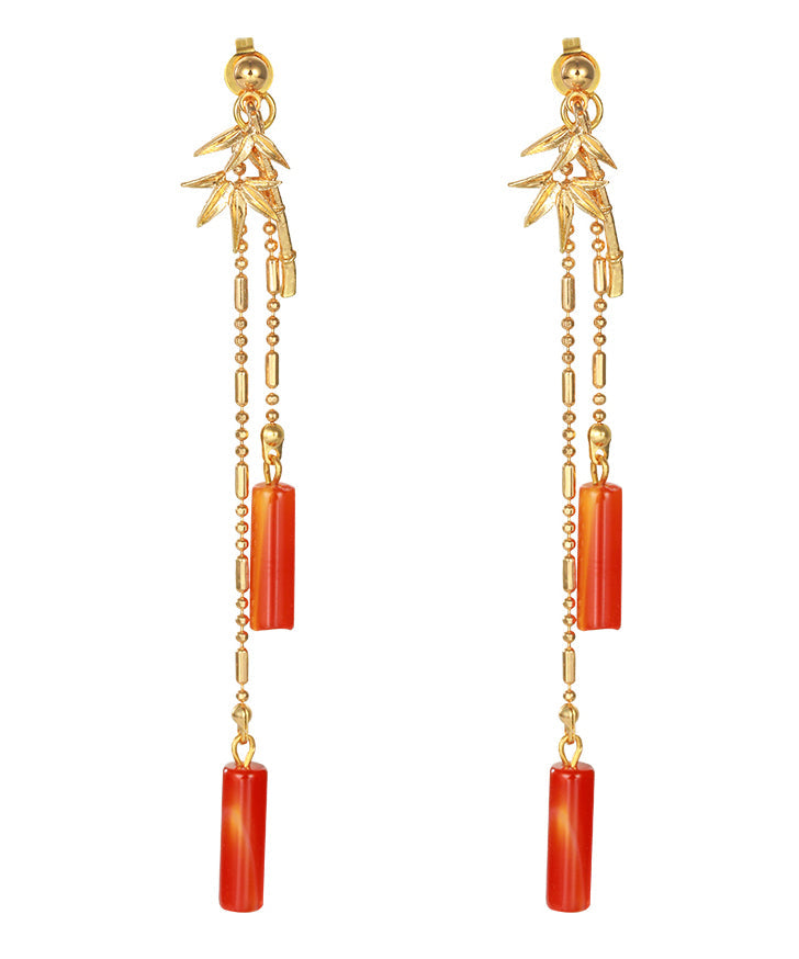 Handmade Bamboo Patchwork Red Jade Stud Earrings