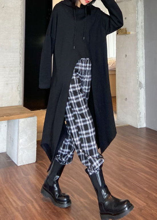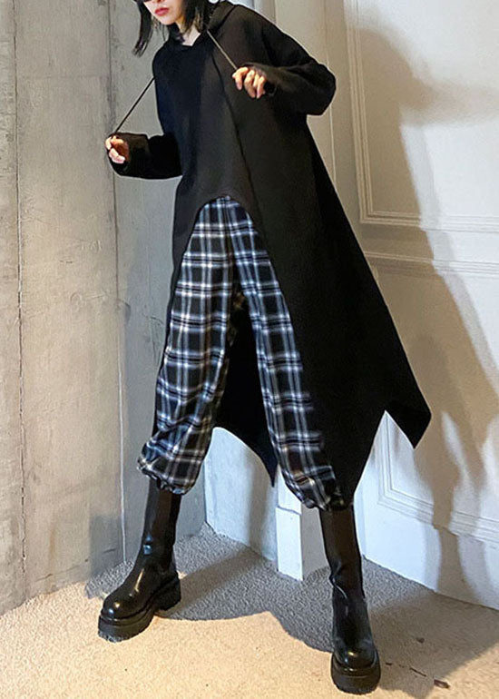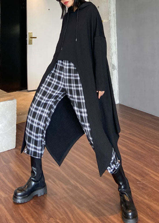Handgemachte schwarze Kapuze Kordelzug asymmetrisches Design Sweatshirts Top Frühling