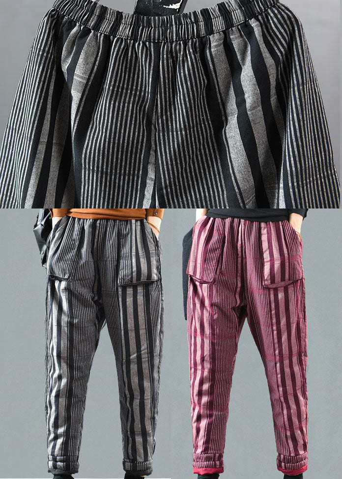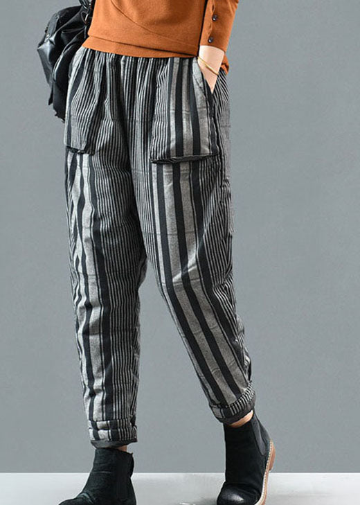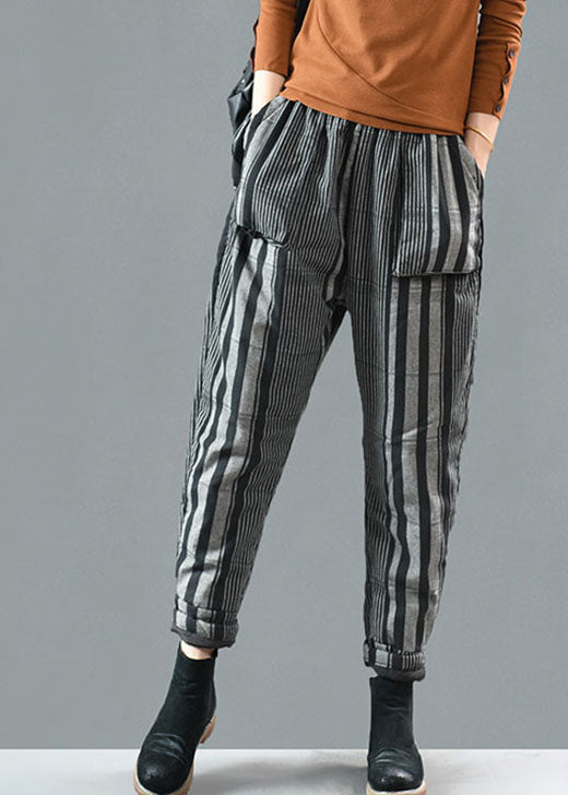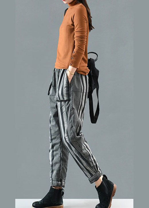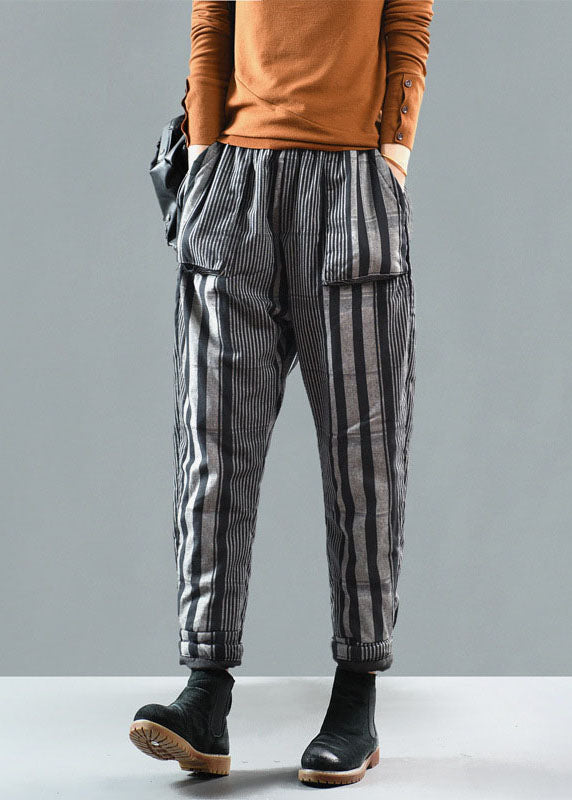 Handgemachte schwarz gestreifte Hose mit feiner Baumwollfüllung für den Winter