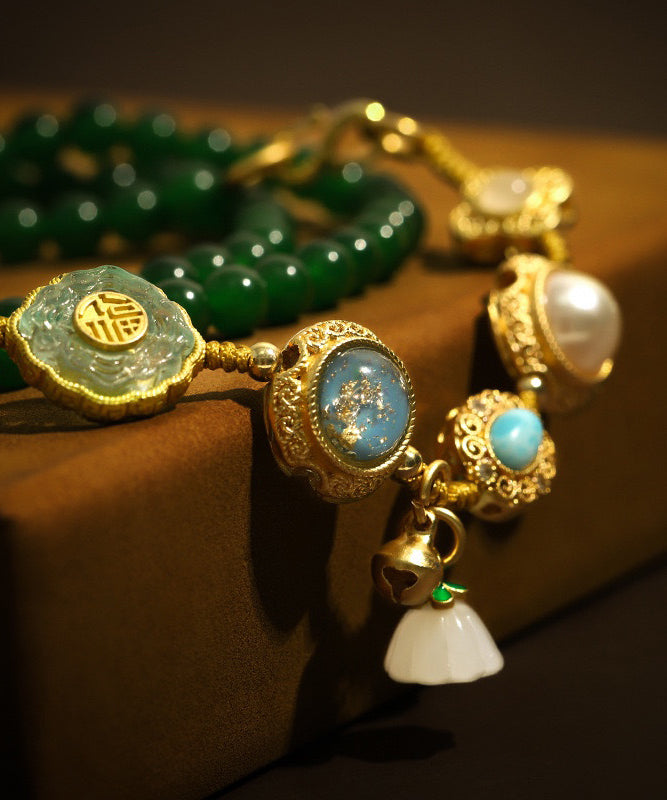 Made of fine Sterling Silver Overgild Jade Turquoise Agate Beading.
