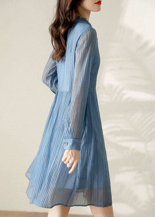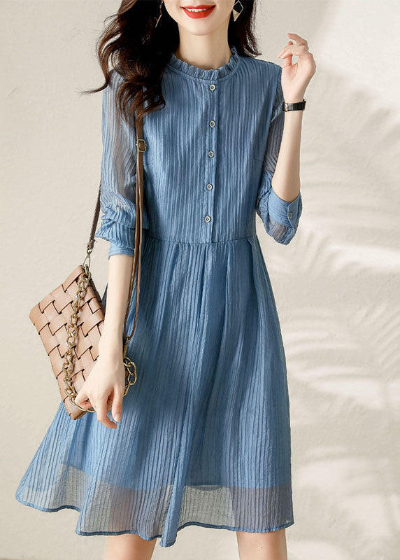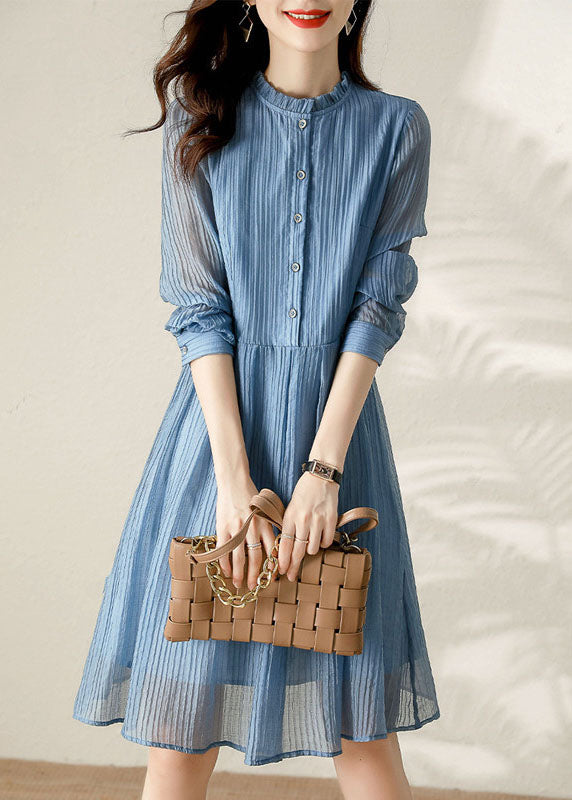 Handgemachtes blaues Rüschenknopf-Urlaubskleid Frühling