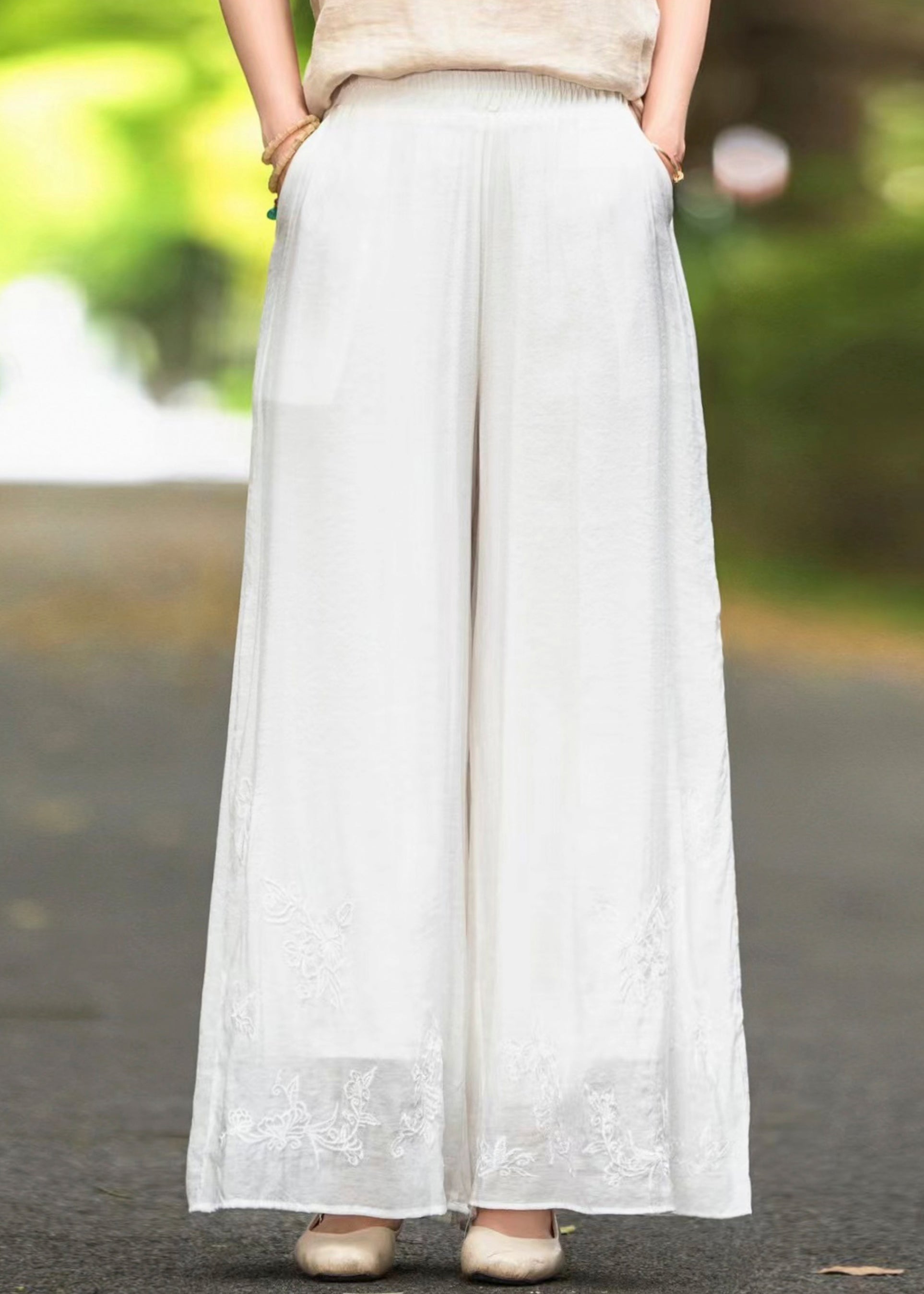 Handmade Brown Solid Elastic Waist Pockets Silk Pants Summer