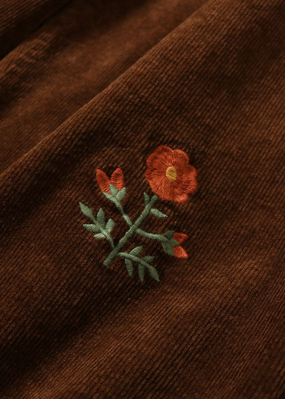 Handgemachte Kaffee bestickte Spitze Patchwork Cordhose Winter
