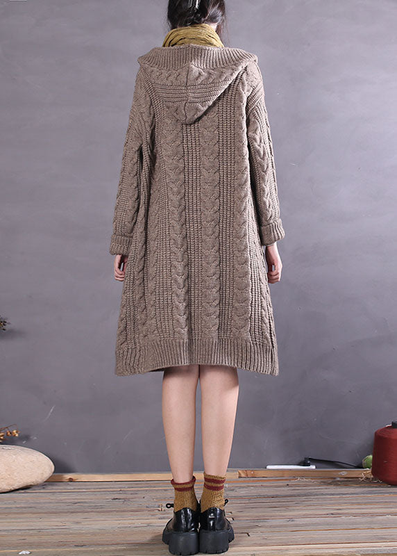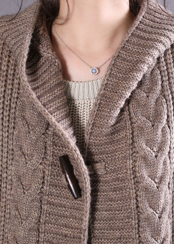 Handgemachte Khaki Kapuzenknopf Wolljacken Frühling
