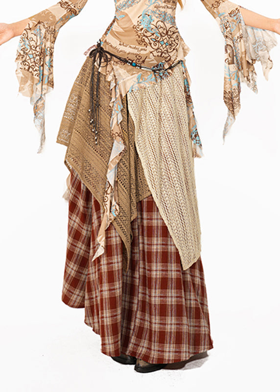 Handmade Red Plaid Knit Patchwork Maxi Skirt Summer