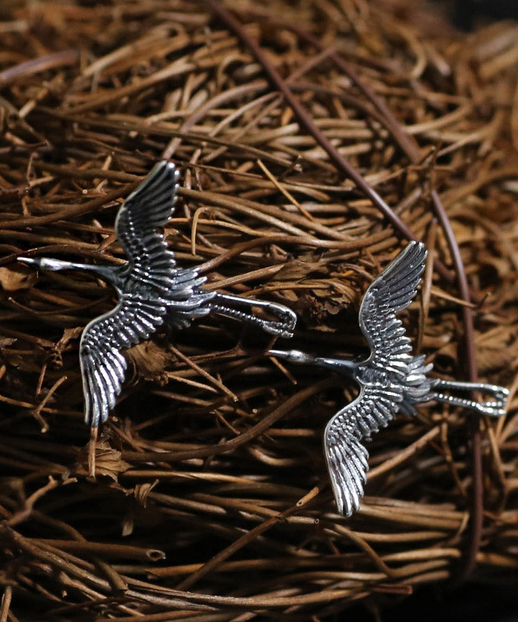 Handmade Sterling Silver Sculpture Crane Stud Earrings