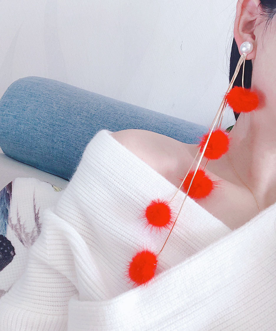 Handmade White Pearl Mink Hair Tassel Drop Earrings