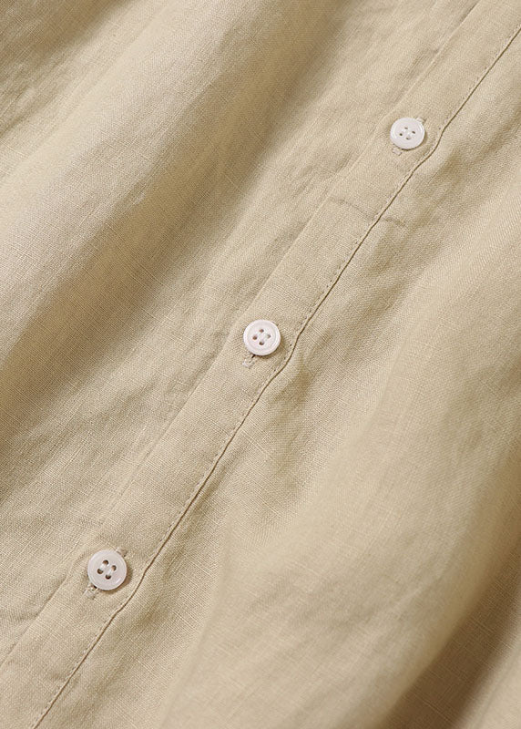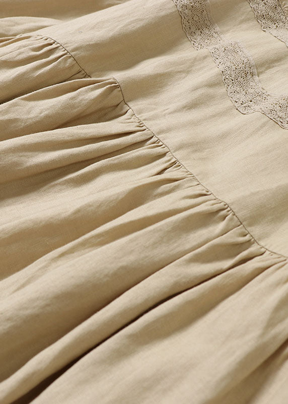 Handgemachte gelbe Puffärmel Patchwork Leinenkleider Frühling