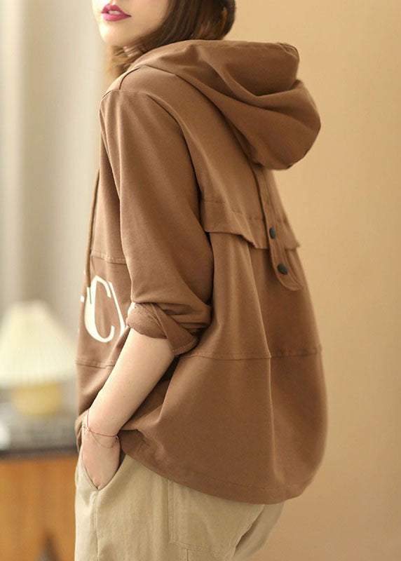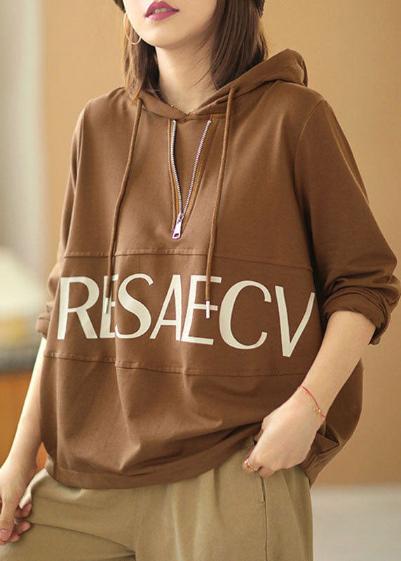 Hot Brown Kapuzenpullover mit Reißverschluss Print Herbst Streetwear