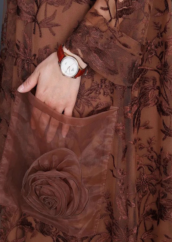 Italienisches schwarzes Jacquard-Spitzenkleid, lässiges Maxikleid für den Frühling