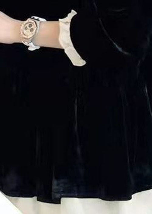 Italienische schwarze Patchwork-Velours-Minikleider Frühling