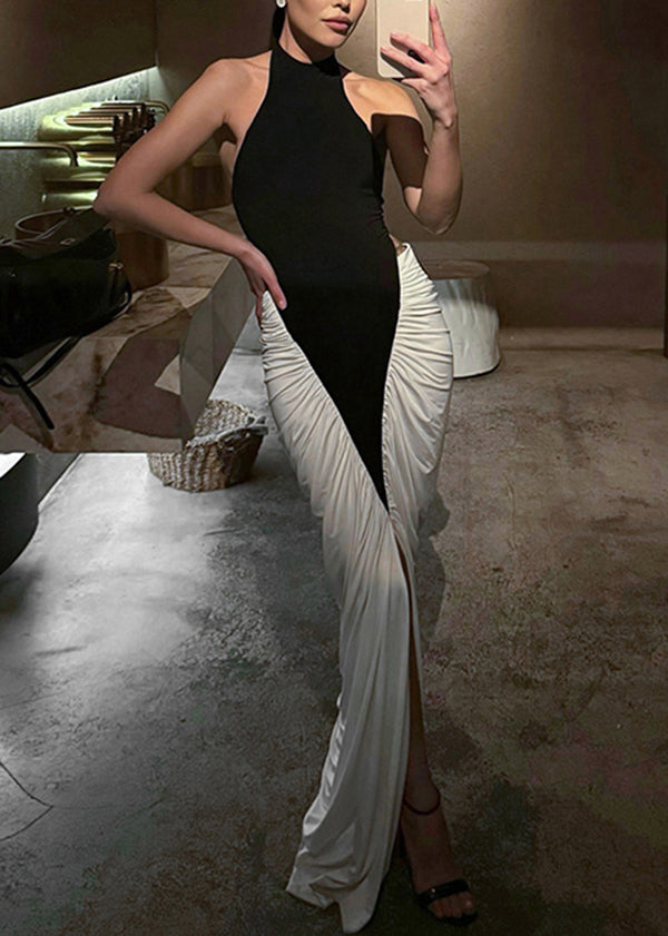 Italian Colorblock Patchwork Slim Fit Cotton Dress Sleeveless