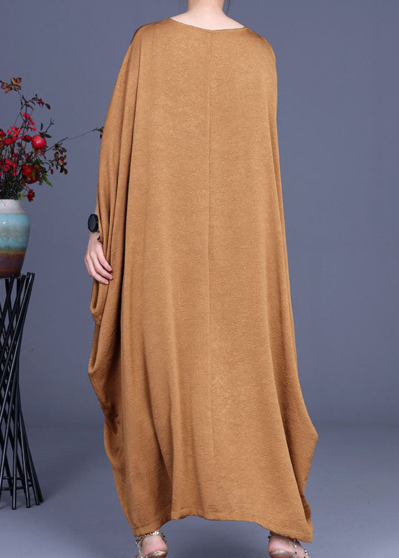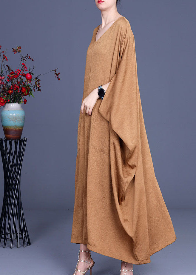 Italienische Khaki V-Ausschnitt Seidenrobe Kleider Frühling