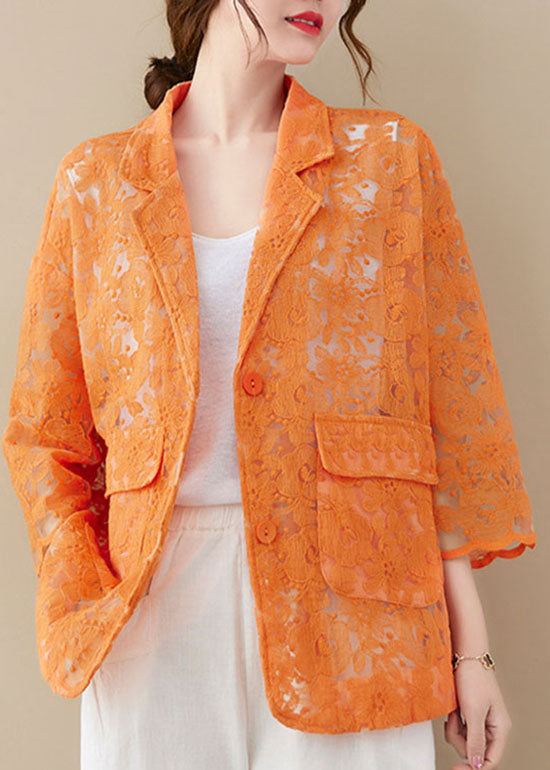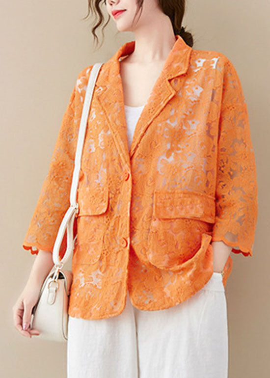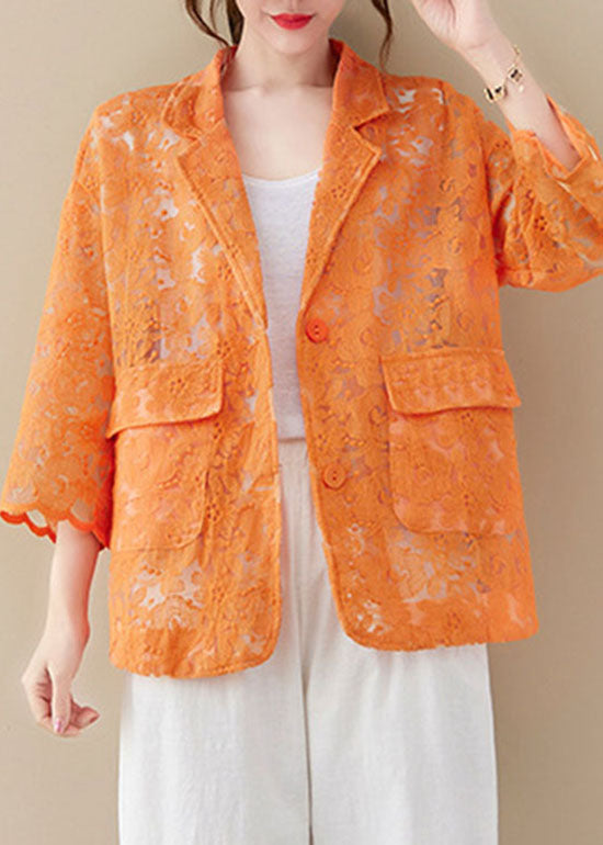 Italienische Orange Button Peter Pan Kragen Spitze Mäntel Langarm