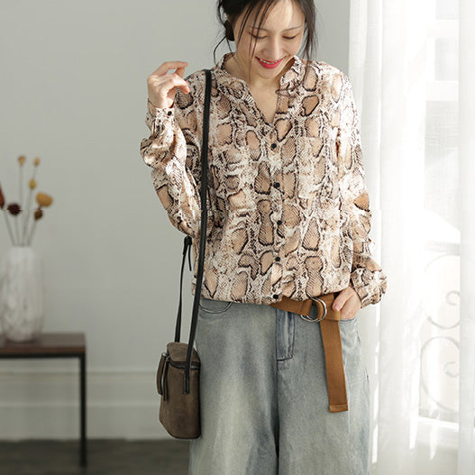 Italienische rosa braune feine Modeideen mit V-Ausschnitt Plus Size Kleidung Blusen