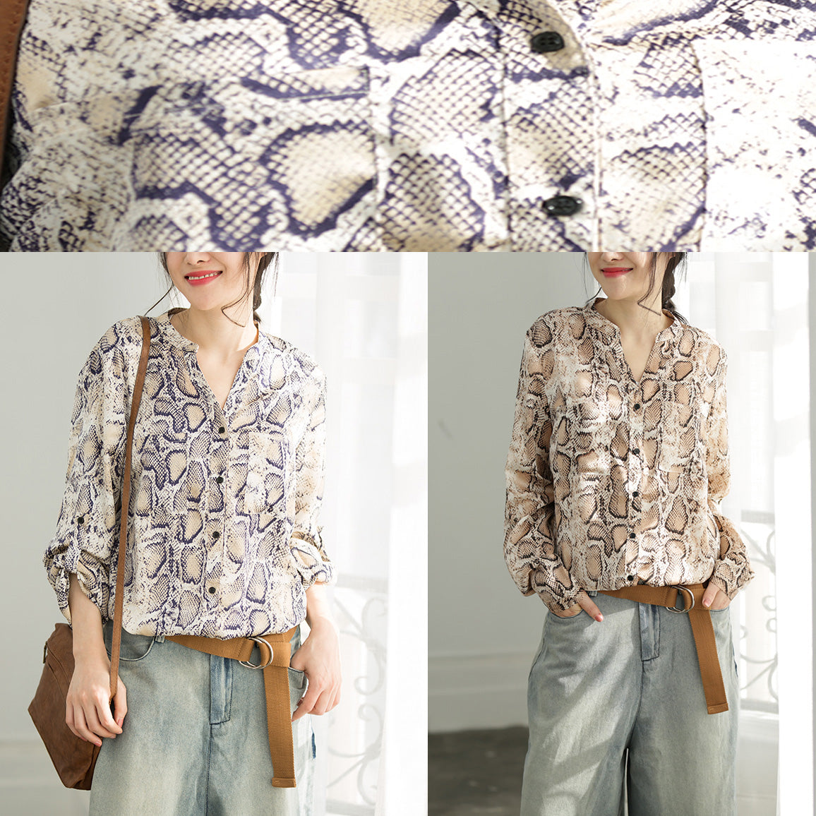 Italienische rosa braune Blusen in Top-Qualität mit V-Ausschnitt in Übergröße