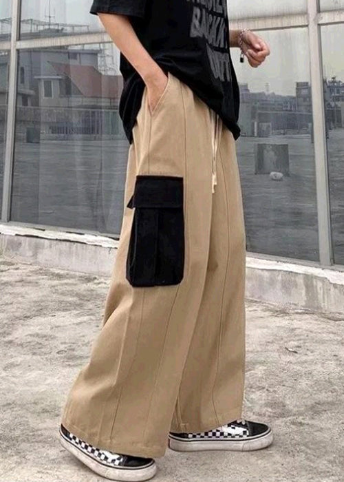 Khaki Original Design Patchwork Cotton Mens Pants Elastic Waist