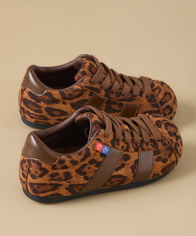 Leopard Suede Flat Shoes Women Splicing Lace Up