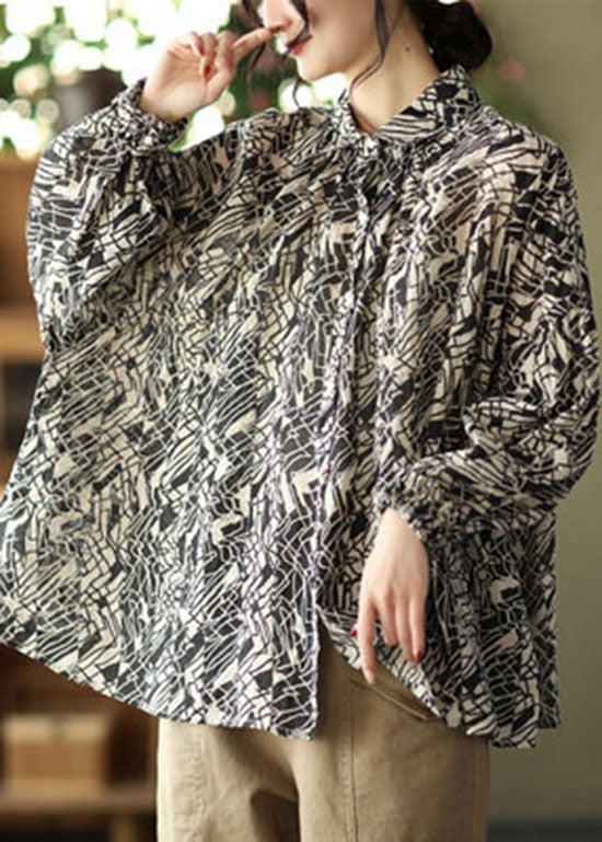 Lockeres schwarzes Hemd mit Peter-Pan-Kragen und Knopfleiste