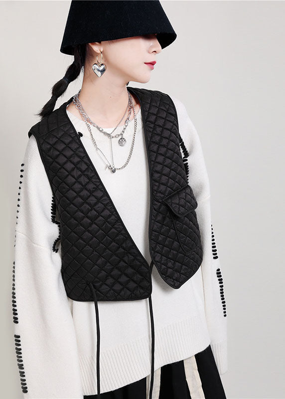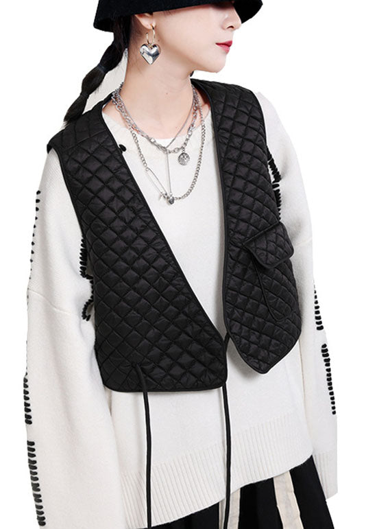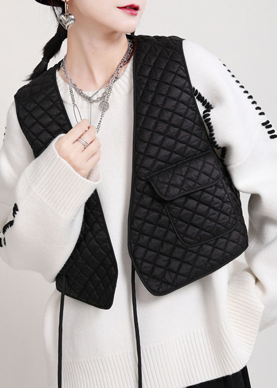 Lockere schwarze Weste mit V-Ausschnitt und Taschen im Herbst