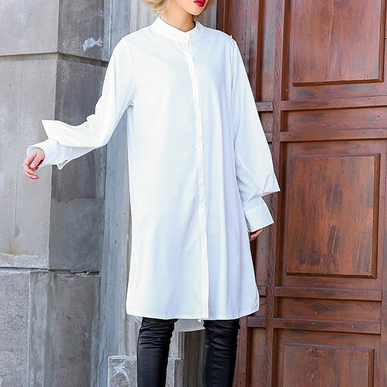 Lockere weiße Baumwollkleidung, stilvolles Baumwollhemd mit Laternenärmeln für die Fotografie