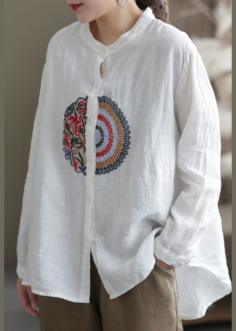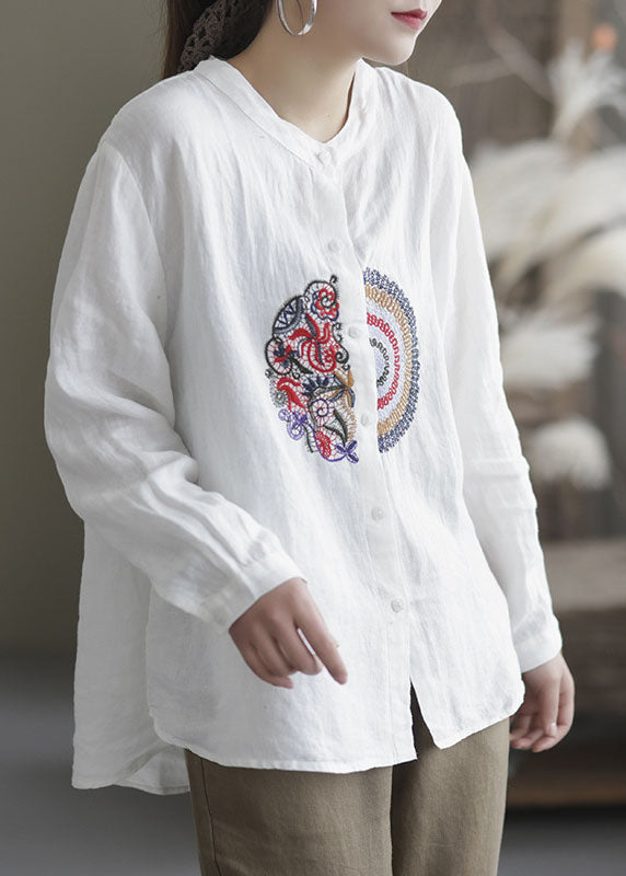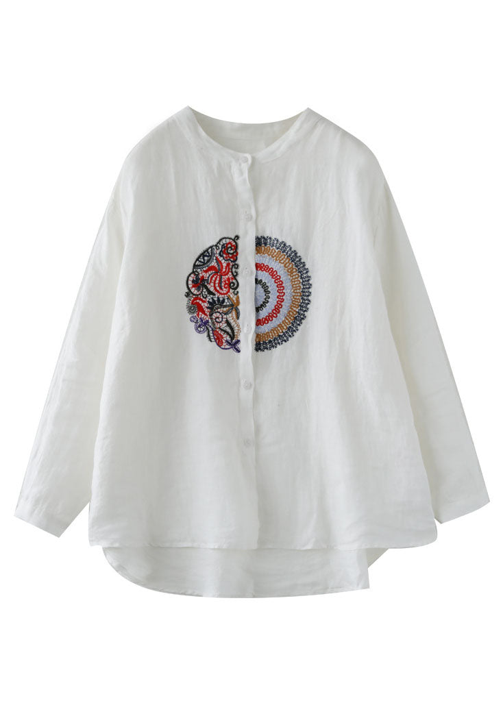Lose weiße bestickte Patchwork-Leinenhemden Frühling