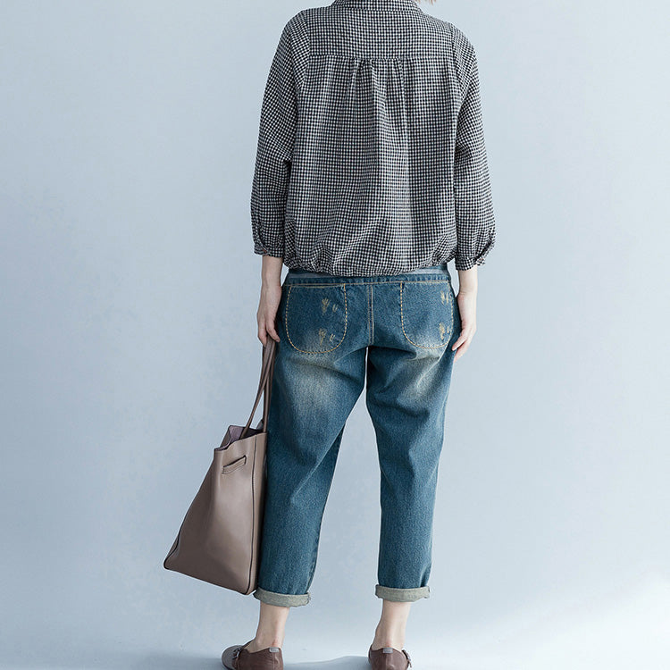 Lose gelbe Leinen Long Shirts Frauen Tutorials Langarm lose Stehkragen Blusen
