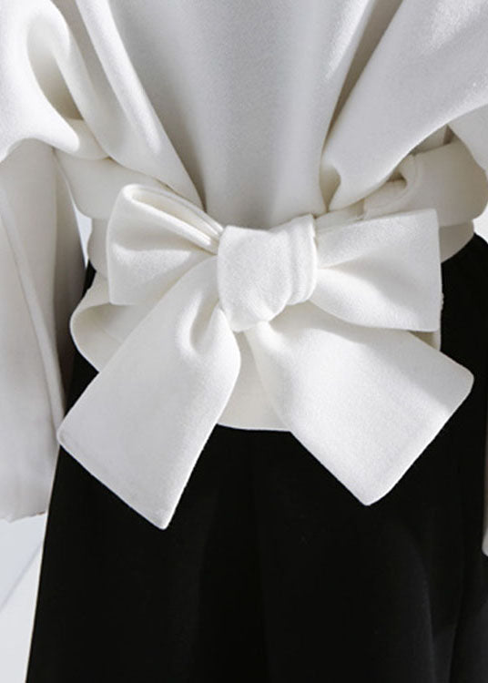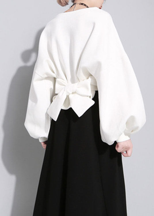 Luxuriöses weißes Sweatshirt-Oberteil mit O-Ausschnitt und asymmetrischem Design für den Herbst