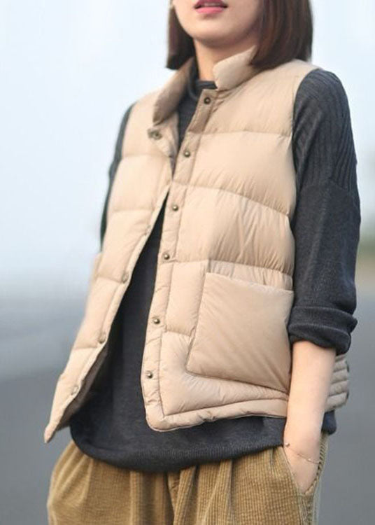 Luxuriöse weiße Winter-Pufferweste mit Taschen und asymmetrischem Knopfdesign