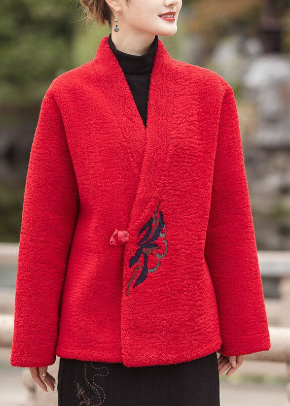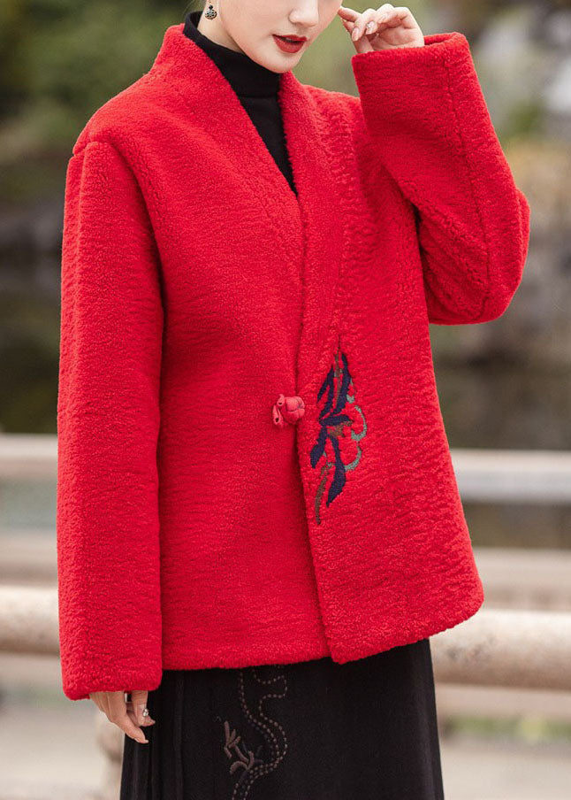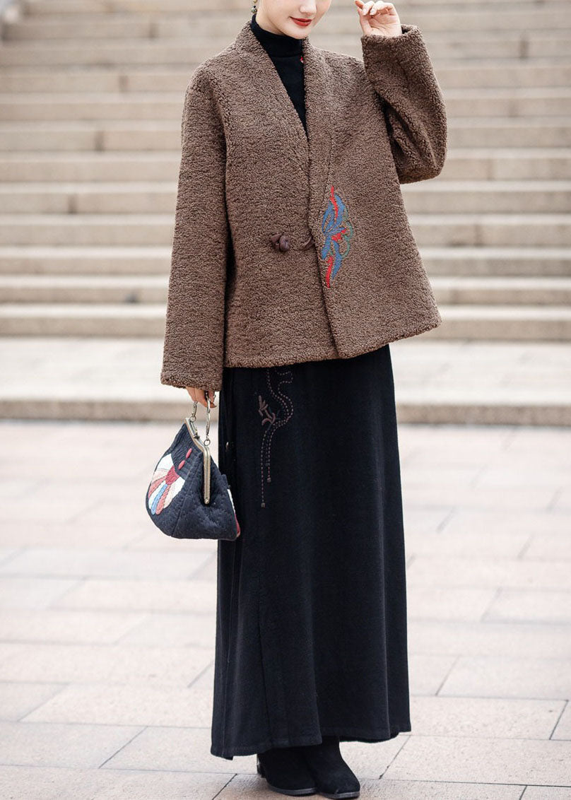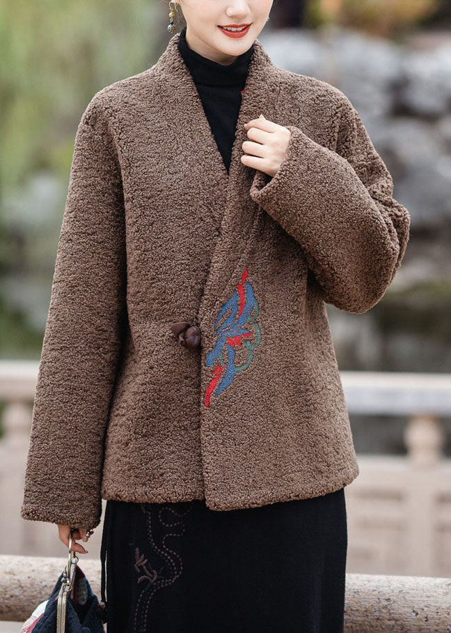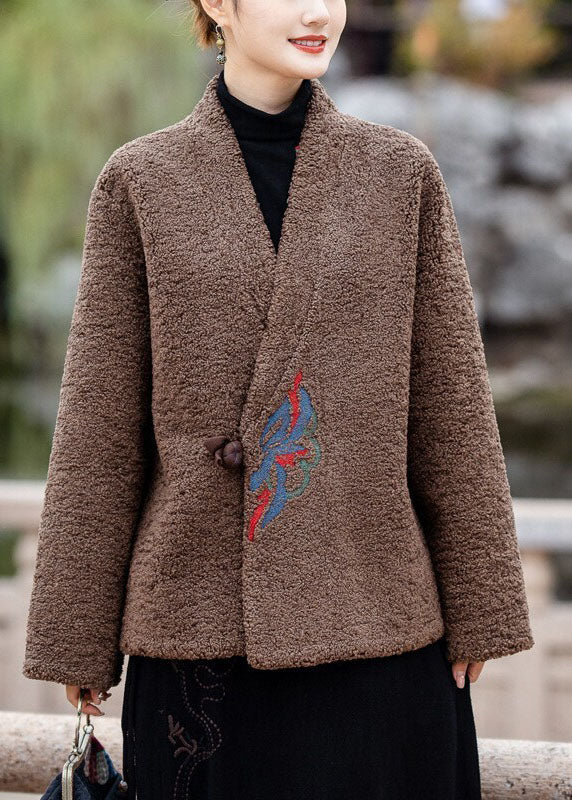 Moderne Schokolade V-Ausschnitt bestickt dicken Teddy Kunstpelz Mäntel Winter
