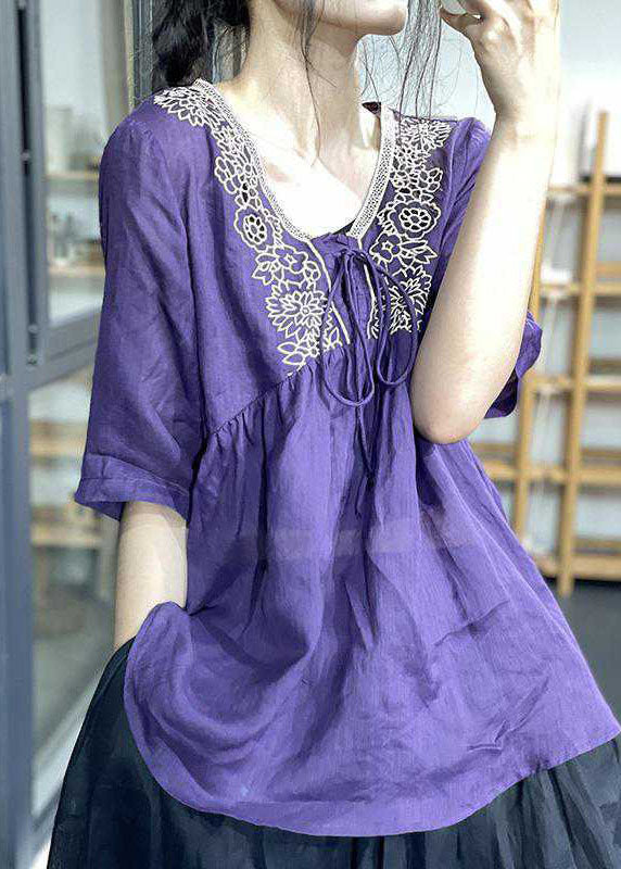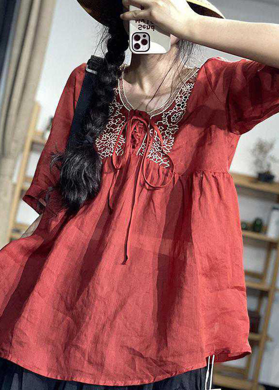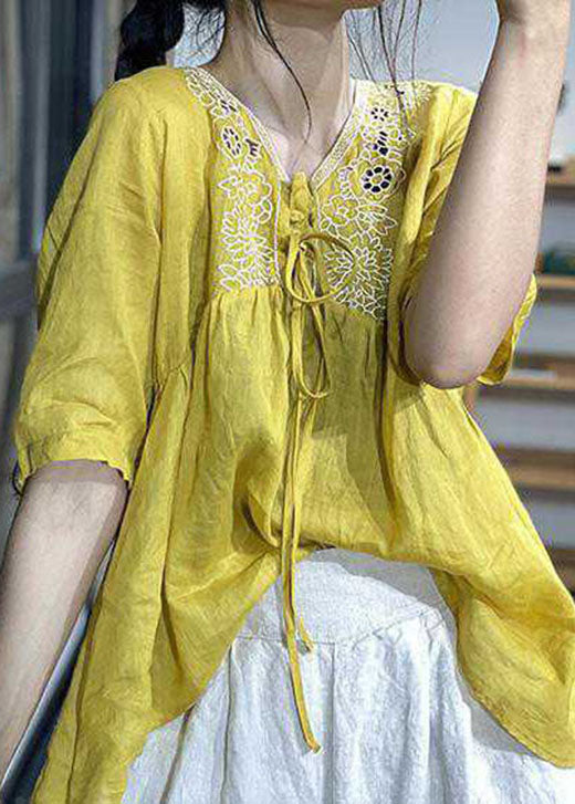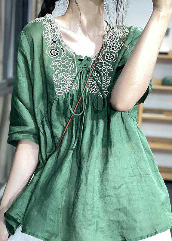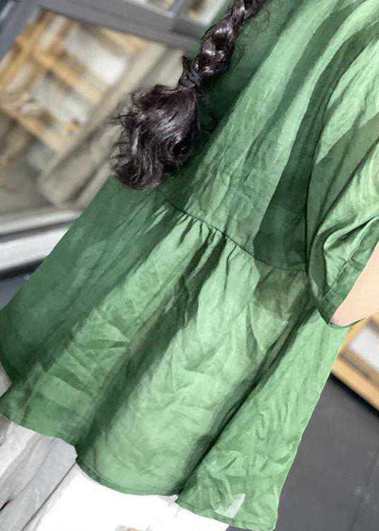Moderne grüne Cinched Hollow Out Leinenhemden Halbarm