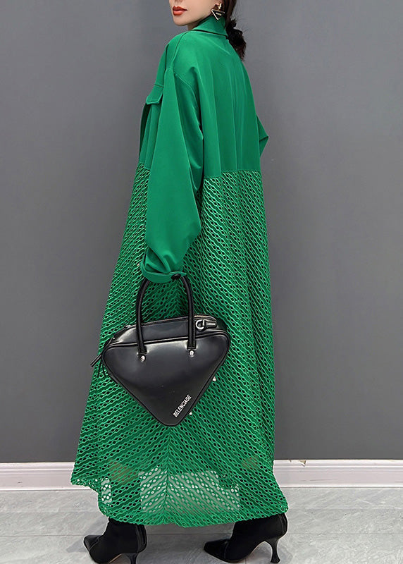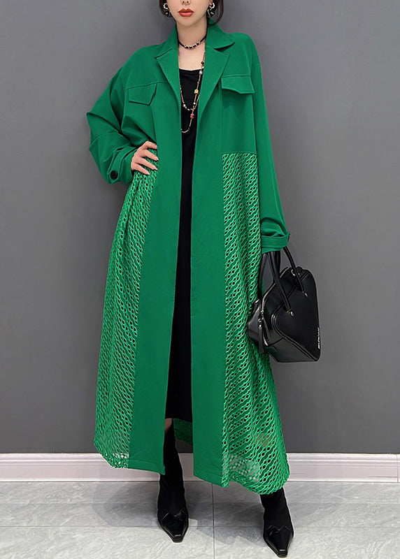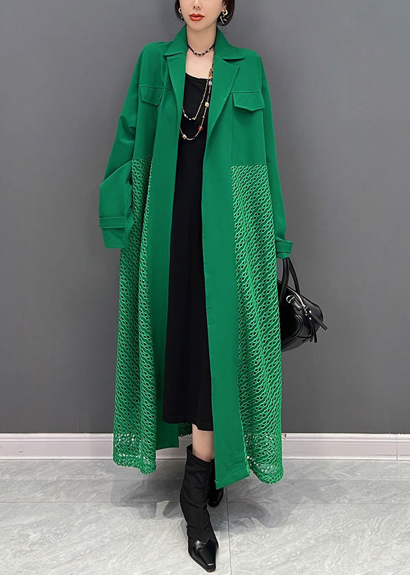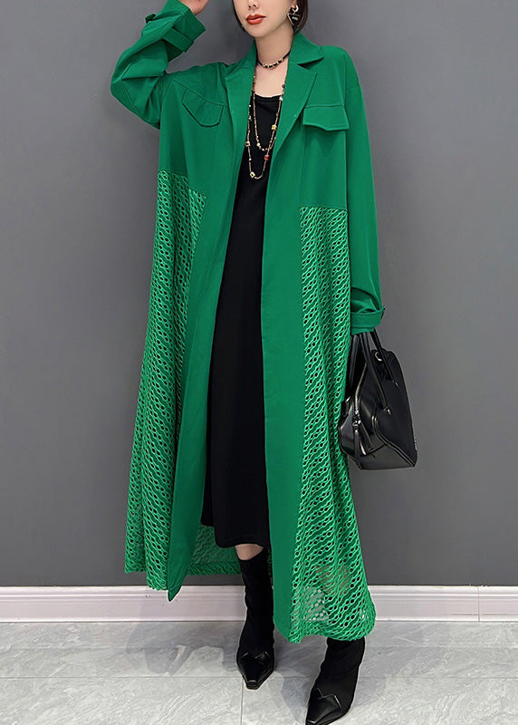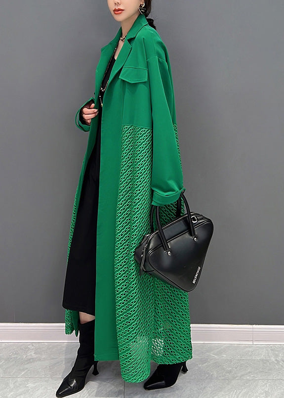 Moderne grüne gekerbte Maxi-Trenchcoats Frühling