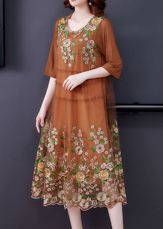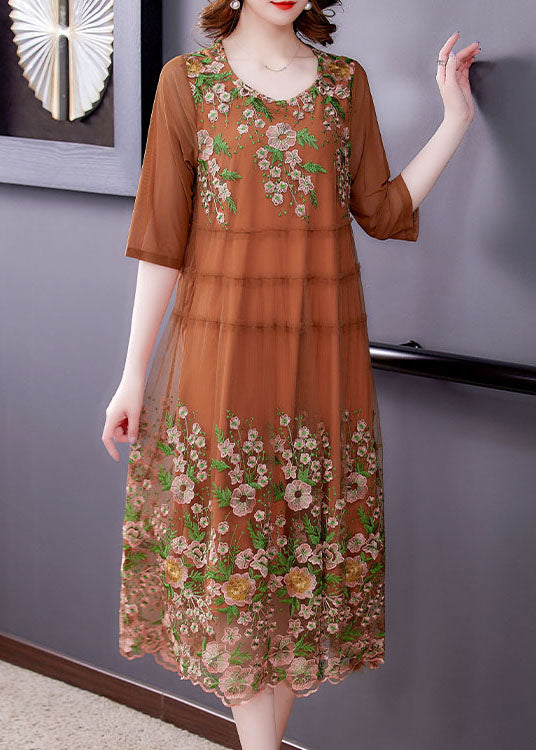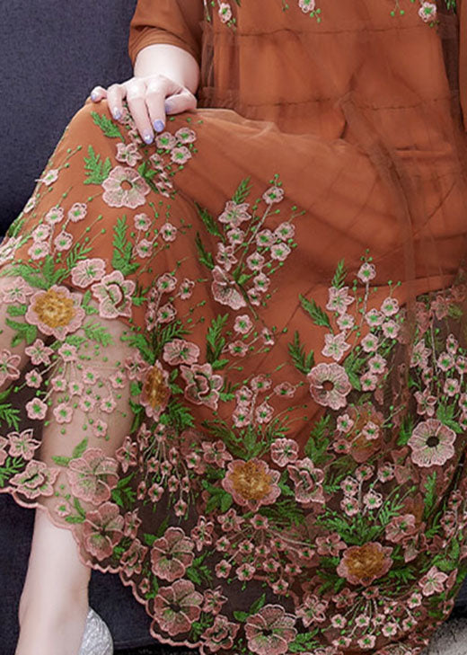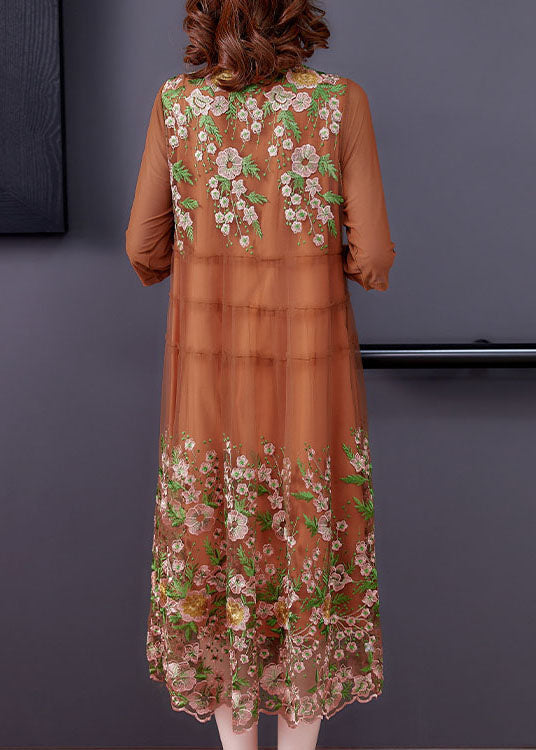 Moderne Khaki bestickte Patchwork Maxikleider Frühling
