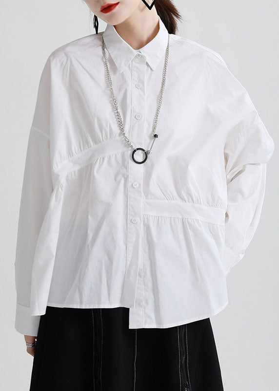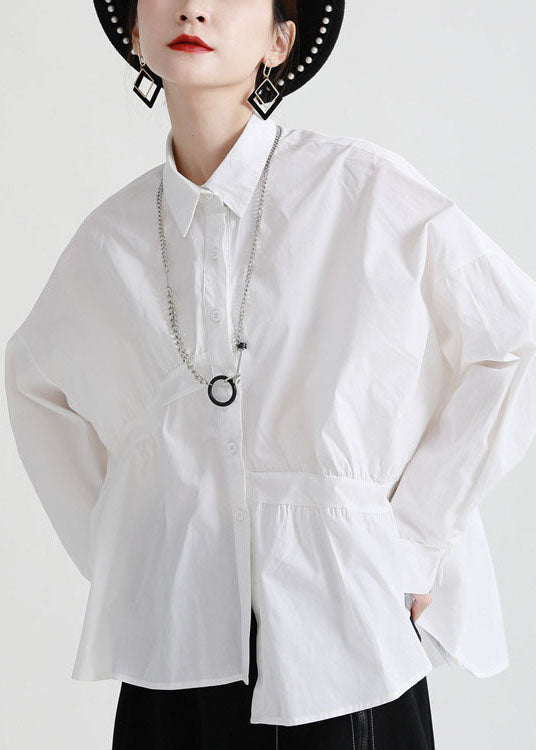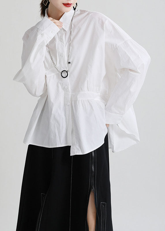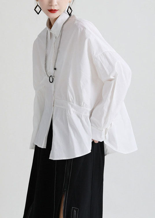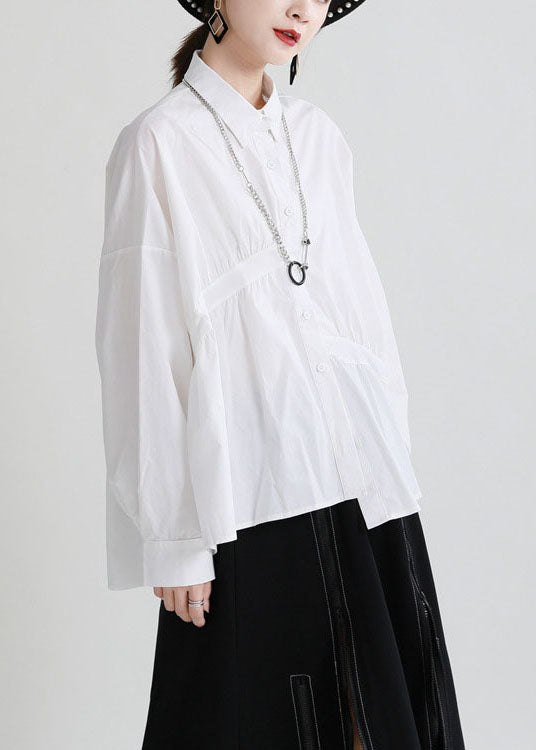 Modernes weißes PeterPan-Kragen-Knopf-Patchwork-asymmetrisches Design Herbst-Top mit langen Ärmeln