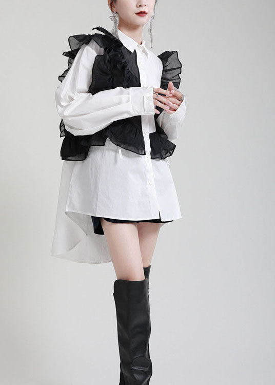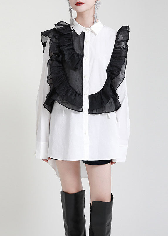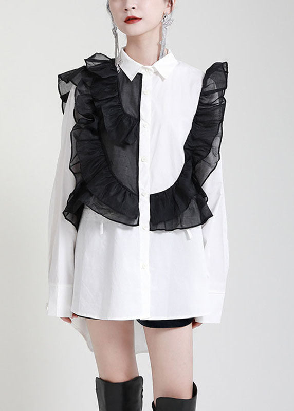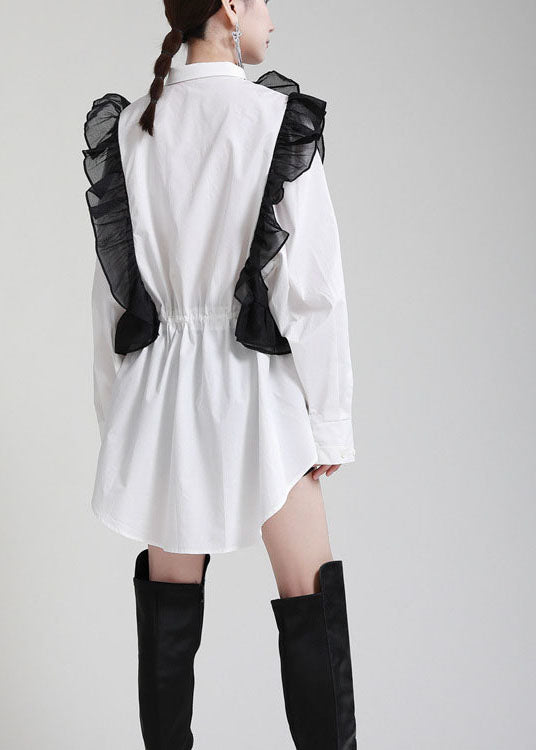 Moderne Weiße PeterPan Kragen Rüschen Herbst Blusen Langarm