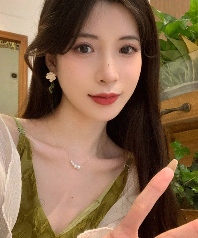 Modern White Sterling Silver Overgild Gardenia Tassel Drop Earrings