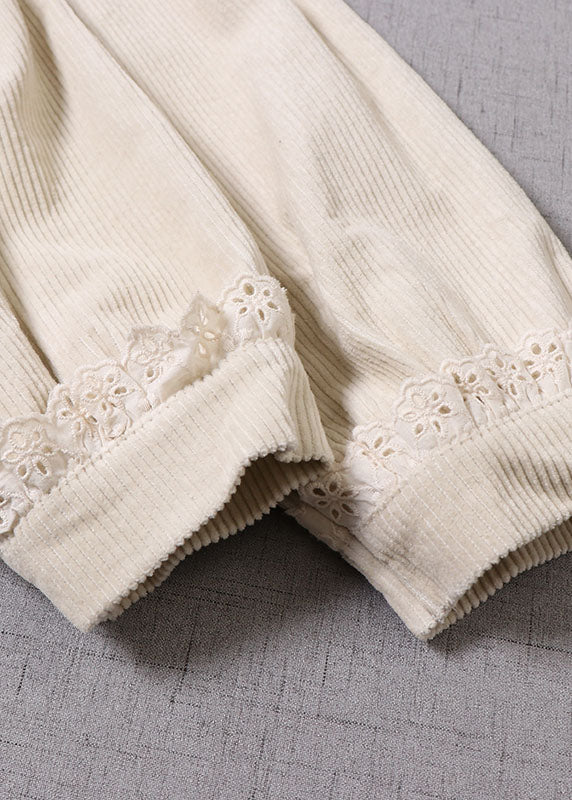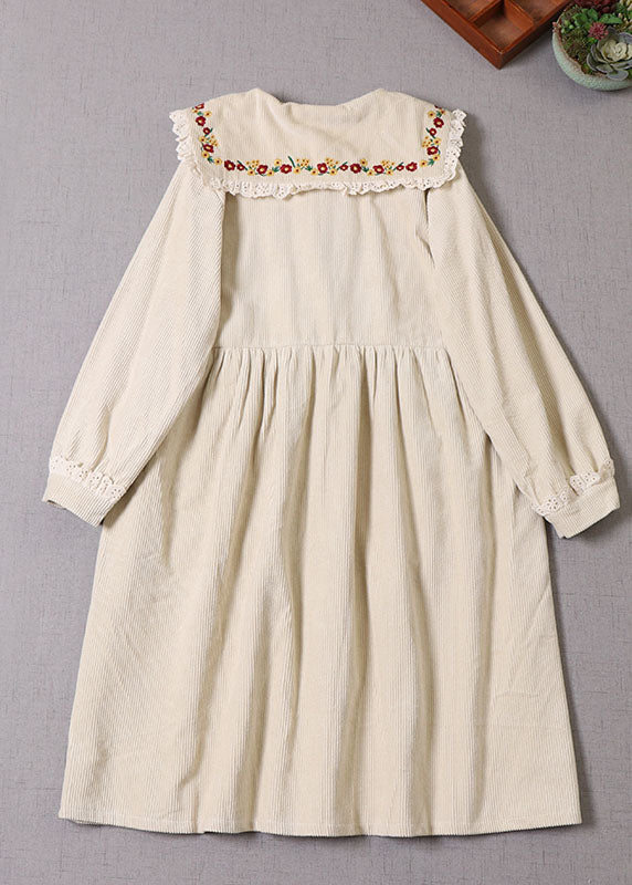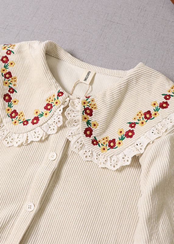 Naturbeiger Wintermantel aus Cord mit Blumenstickerei