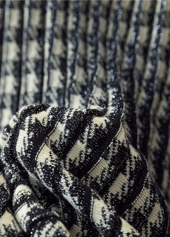 Natürlicher schwarzer karierter Strick-Faltenrock Frühling