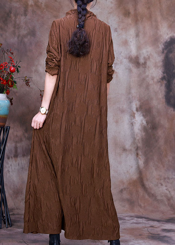Natürliche Schokolade Rollkragen Taschen Seidenkleid Frühling