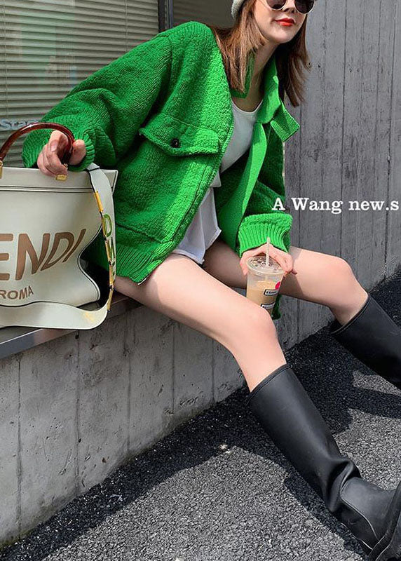 Naturgrüner Patchwork-Strickpullovermantel mit Reißverschluss und Knopftaschen