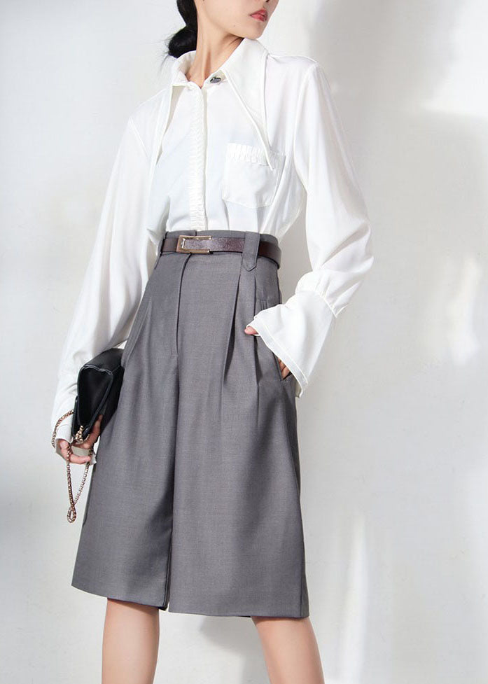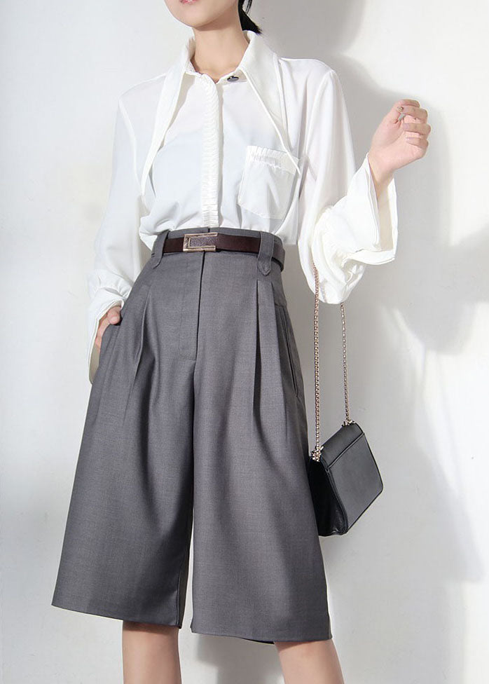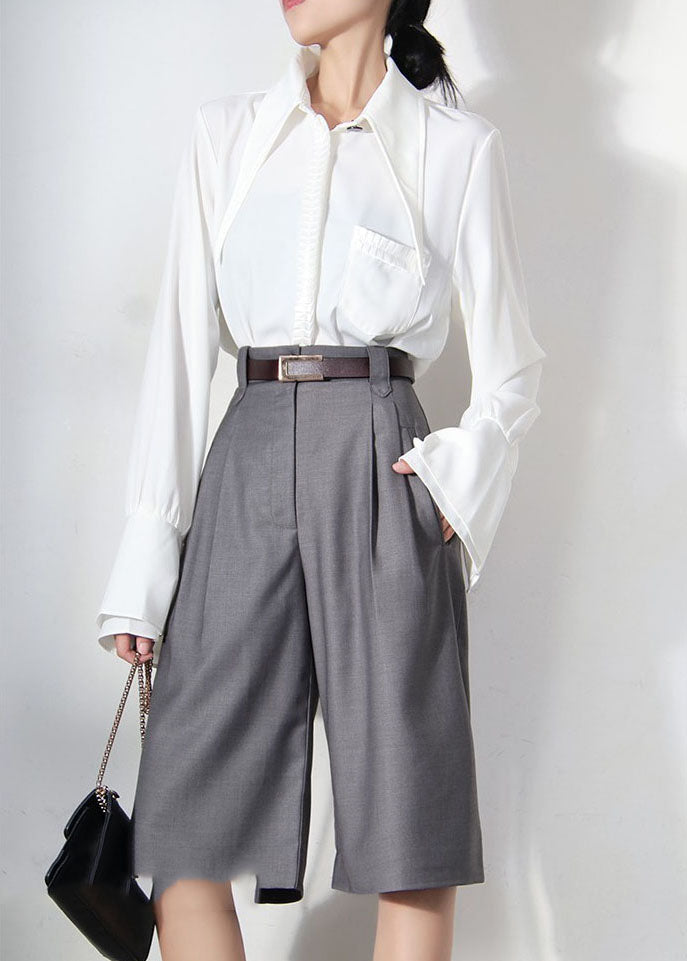 Natürliche Graue Tunika Taschen weite Beinhose Frühling