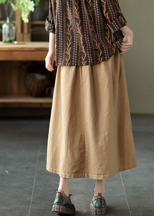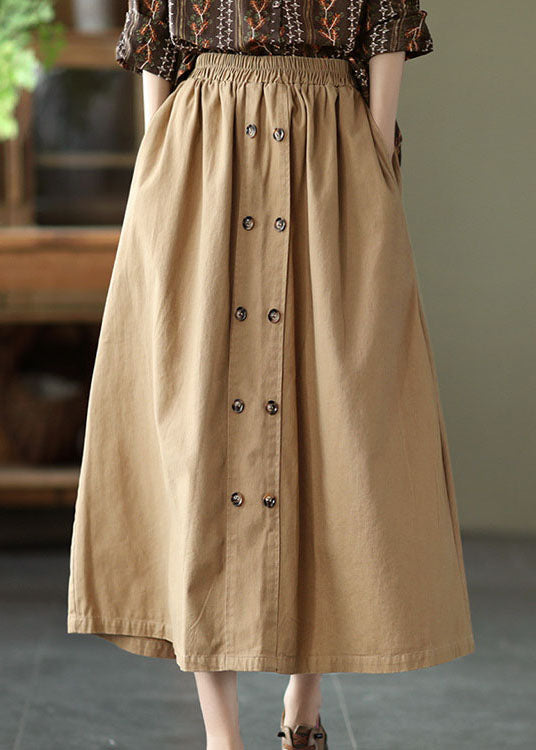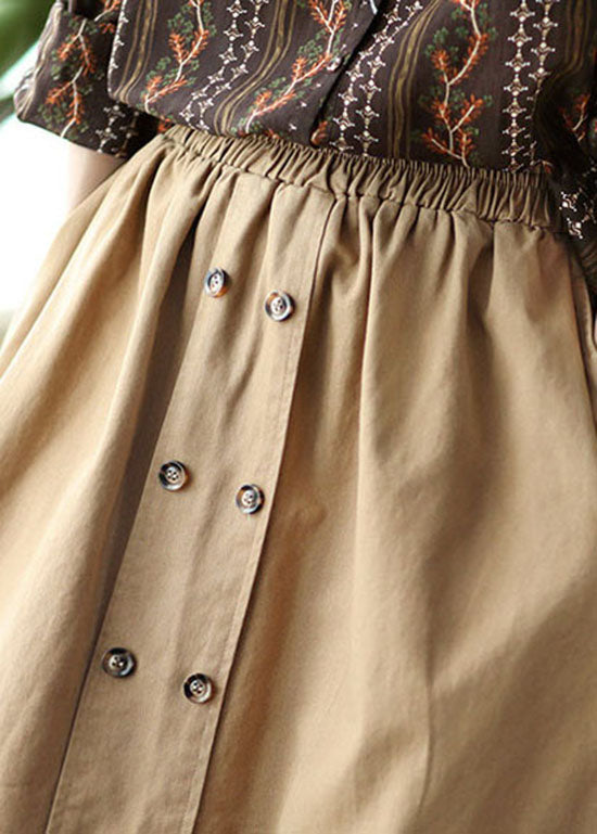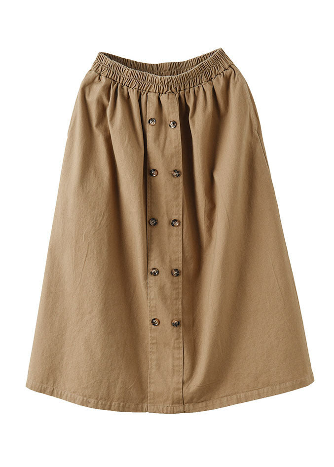 Natürliche Khaki doppelreiher Baumwolle A-linie Röcke Frühling