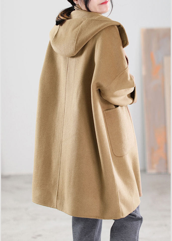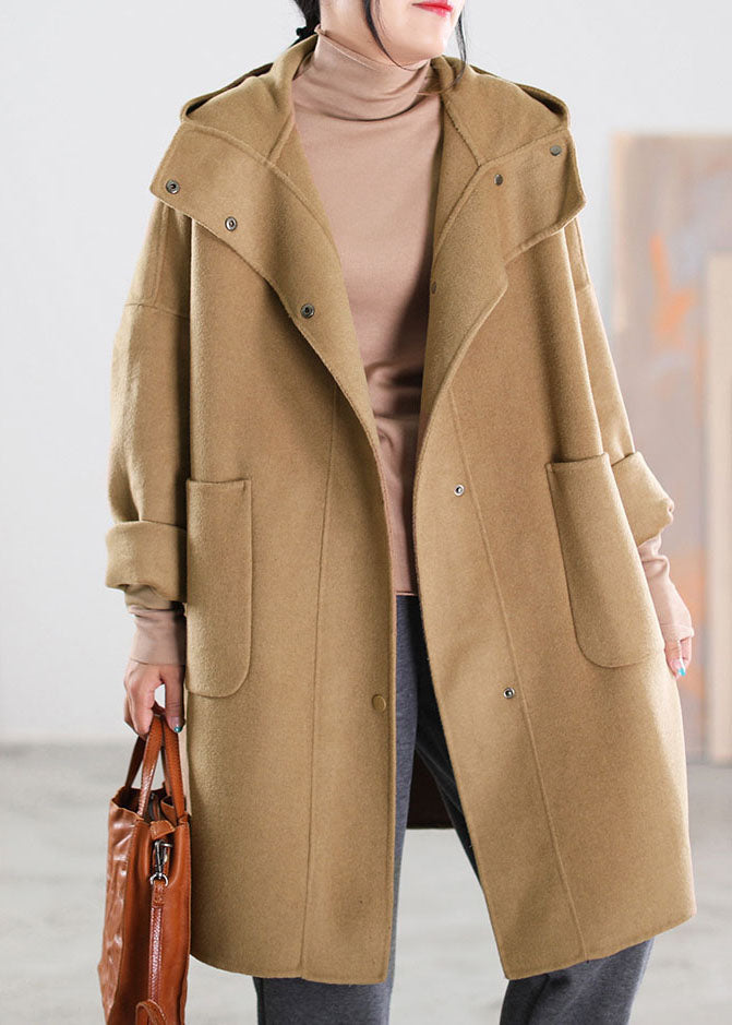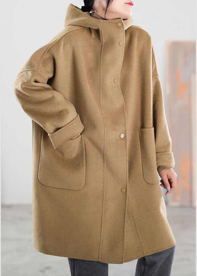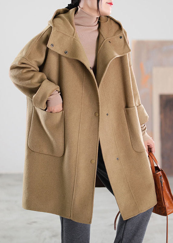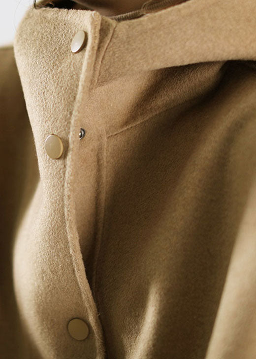 Natürliche Khaki Kapuzentaschen Wollmäntel Winter