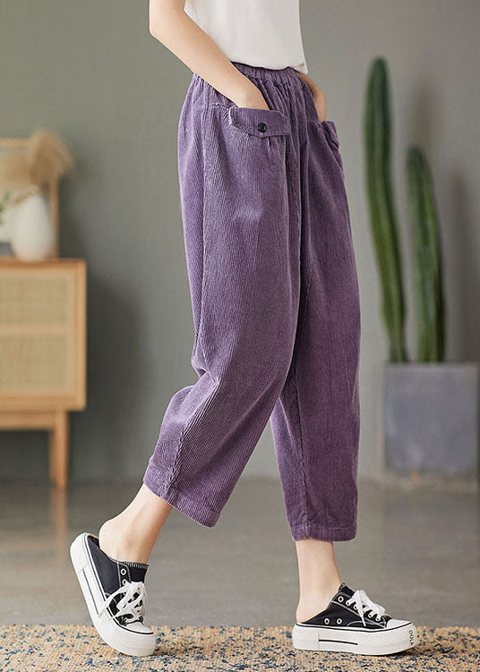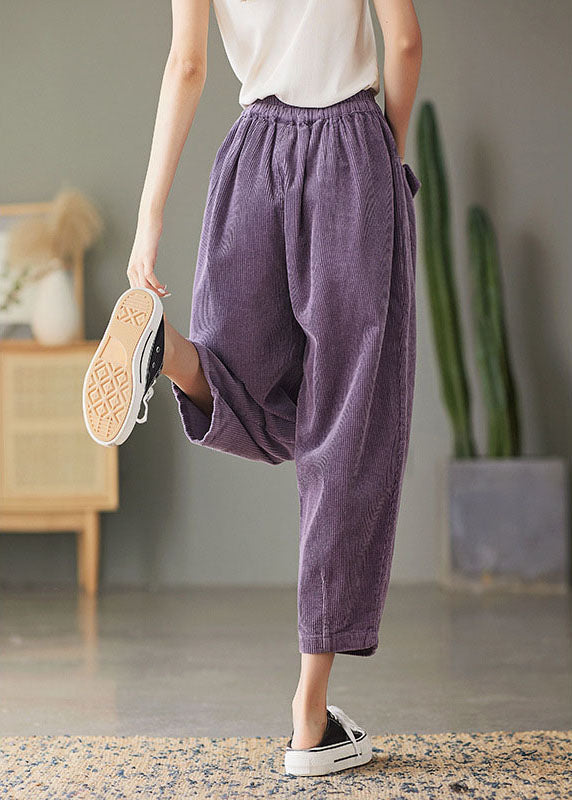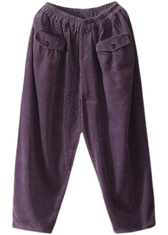 Natürliche lila Retro-Taschen Cord Herbsthose