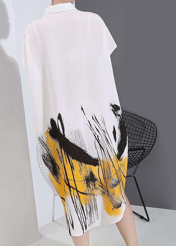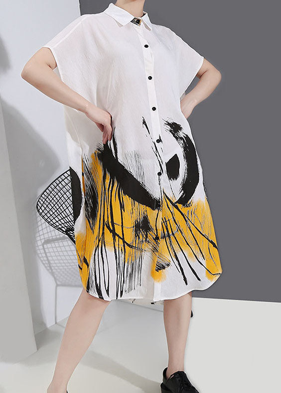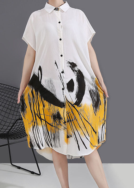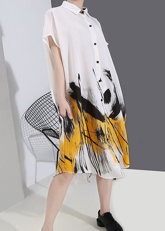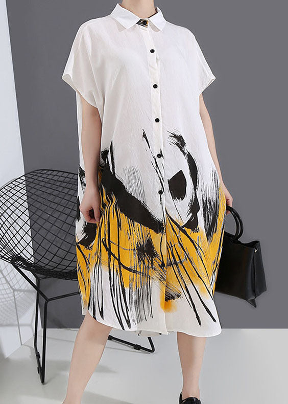 Natürliches weißes Hemdkleid mit niedrigem und hohem Design und Peter-Pan-Kragen