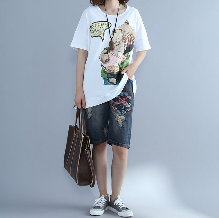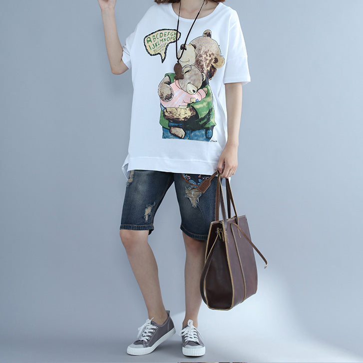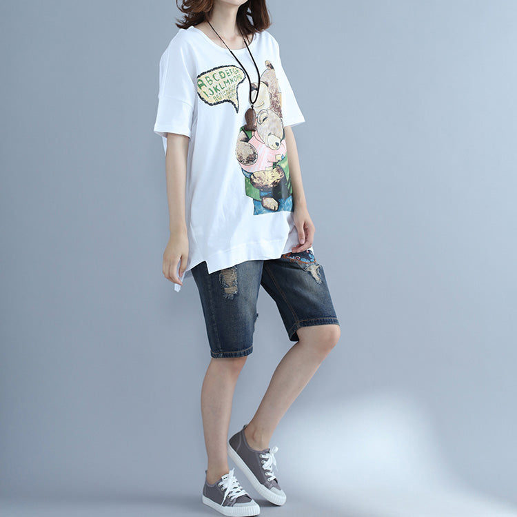 Natürliche weiße bedruckte Baumwollkleidung Omychic Photography Batwing Sleeve O-Ausschnitt Top