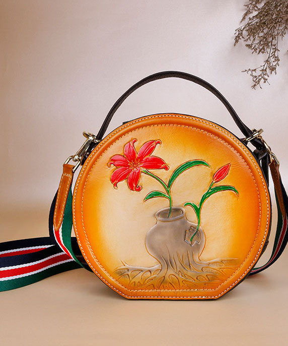 Handtasche aus Kalbsleder mit Prägung in Naturgelb